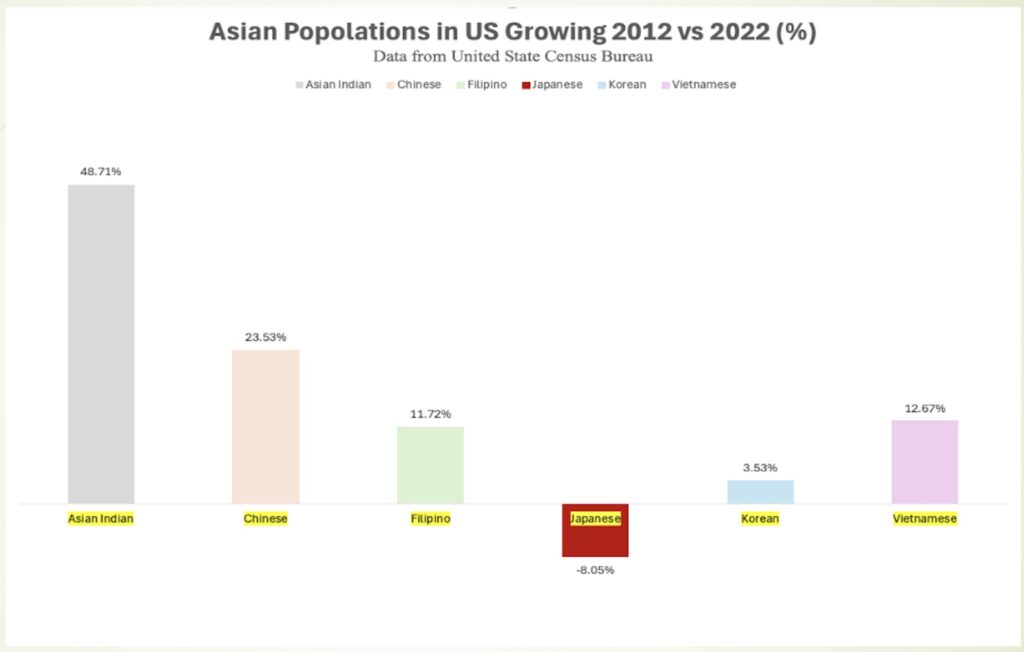 それは単なる人口統計の話ではなく、在米日本人の若年層人材が構造的に減っているという現実を表しています。