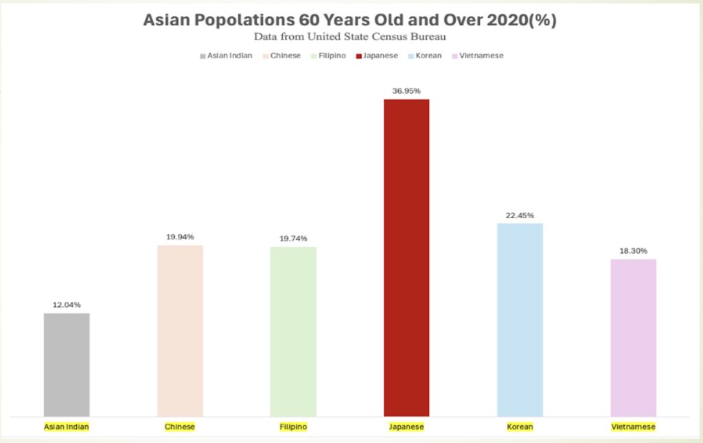 2020年の米国国勢調査によると、アメリカ在住の日本人のうち49.1%が60歳以上という結果が出ています。つまり、働ける年齢層の日本人は全体の半分以下。