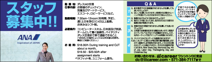 ーワシントン首都圏(DMVエリア)の日本人コミュニティーのなかには、主婦の方、OPTの学生の方など「空港で働いてみたい」と興味を持つ方もいらっしゃると思います。そんな方にメッセージをお願いします。