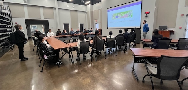 毎年、チャタヌーガ最大の日系企業であるコマツ・アメリカ株式会社様の多大なご厚意により、交換留学生を1日受け入れていただいています。プログラムでは、現地生産工場の見学に加え、企業の歴史や製品に関するプレゼンテーション、さらにはテネシー州での生活や就労についてのお話も伺っています。